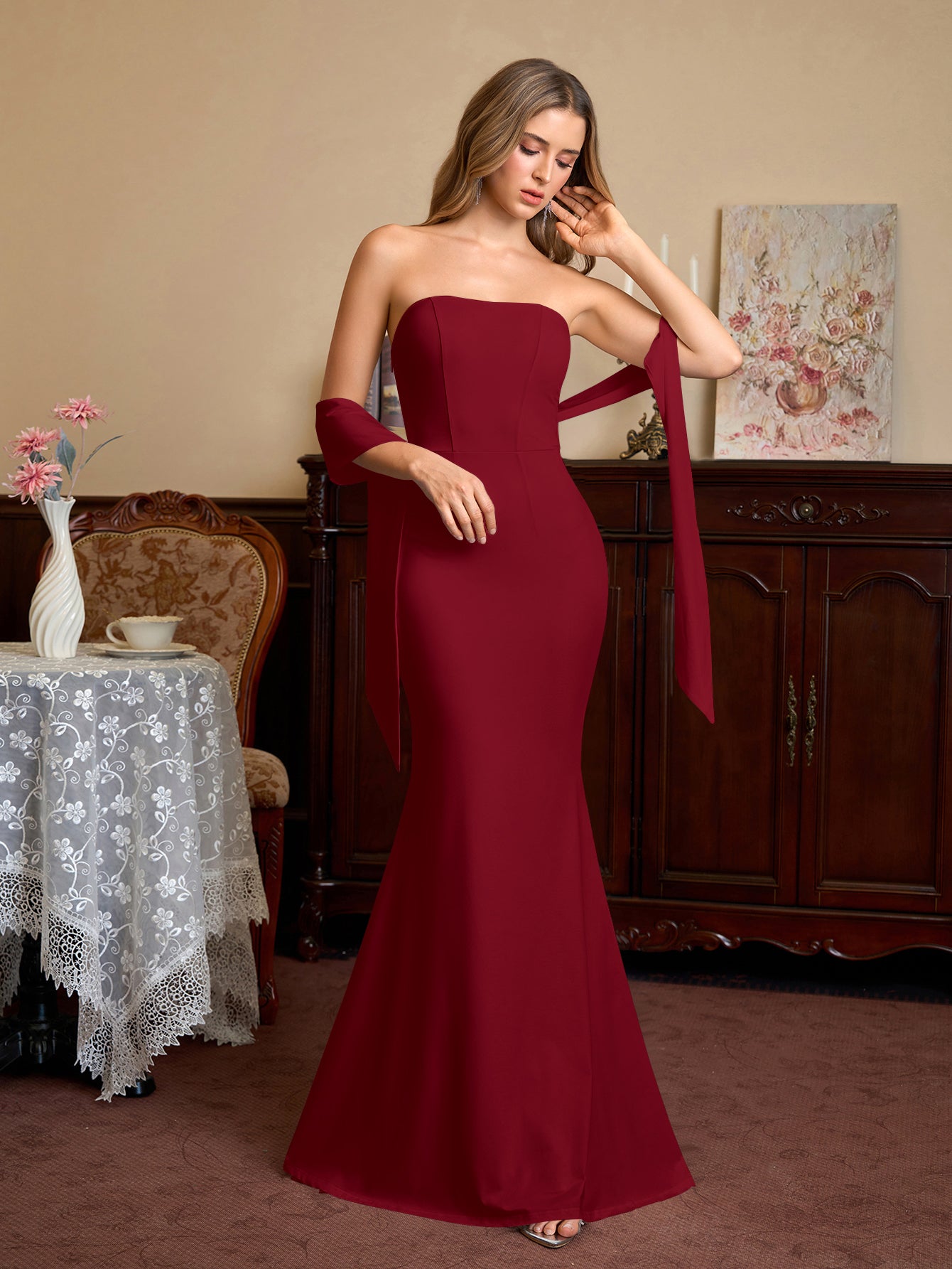 Ribbon Hanging Neck Backless Solid Tube Dress#color_red