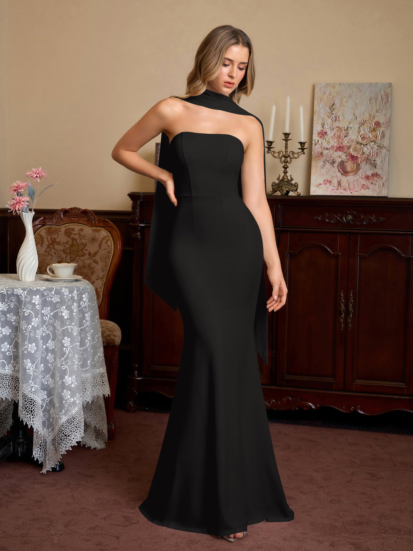 Hanging Ribbon Neck Backless Solid Tube Dress#color_black