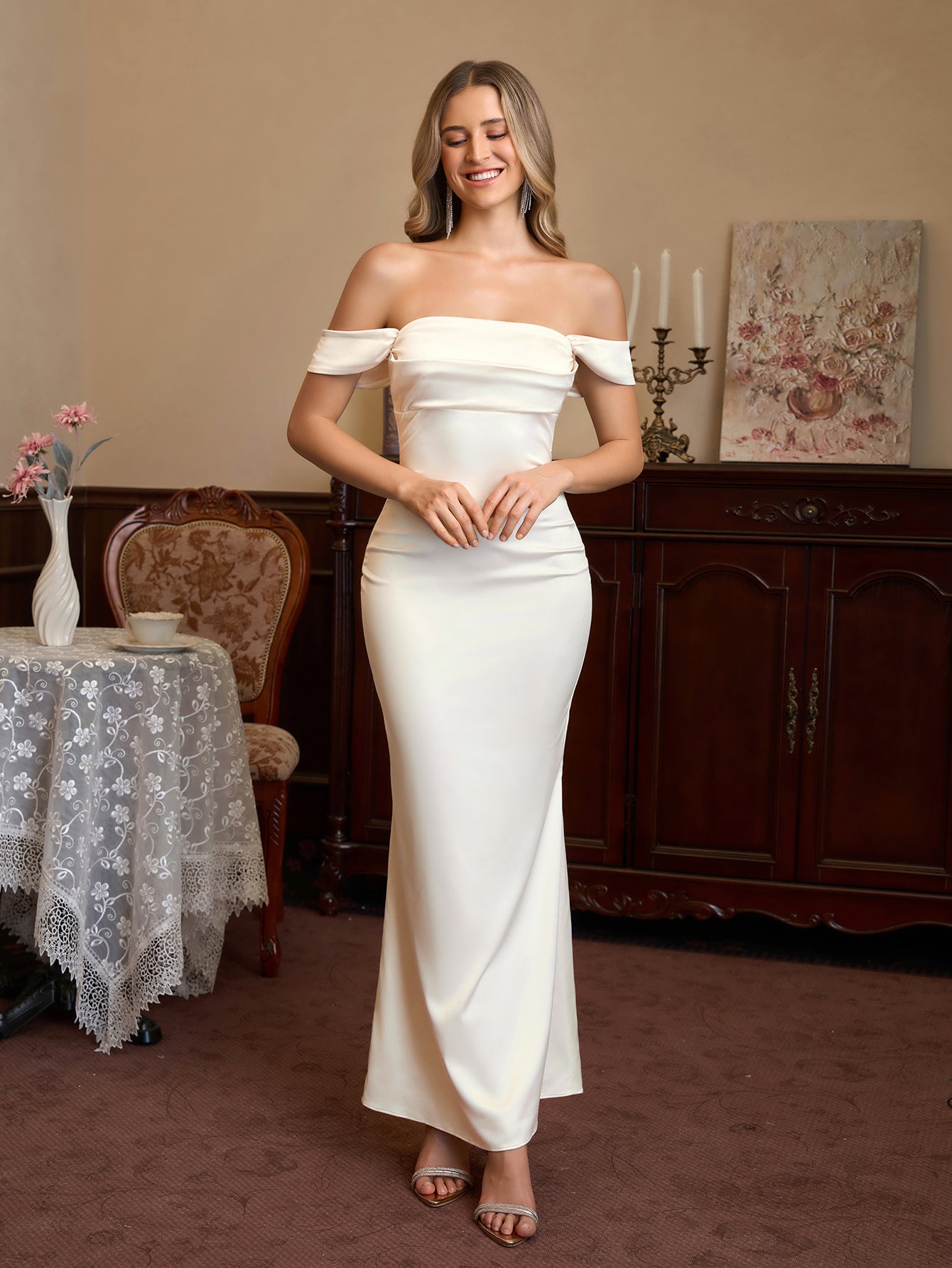 Off Shoulder Backless Satin Mermaid Dress#color_ivory