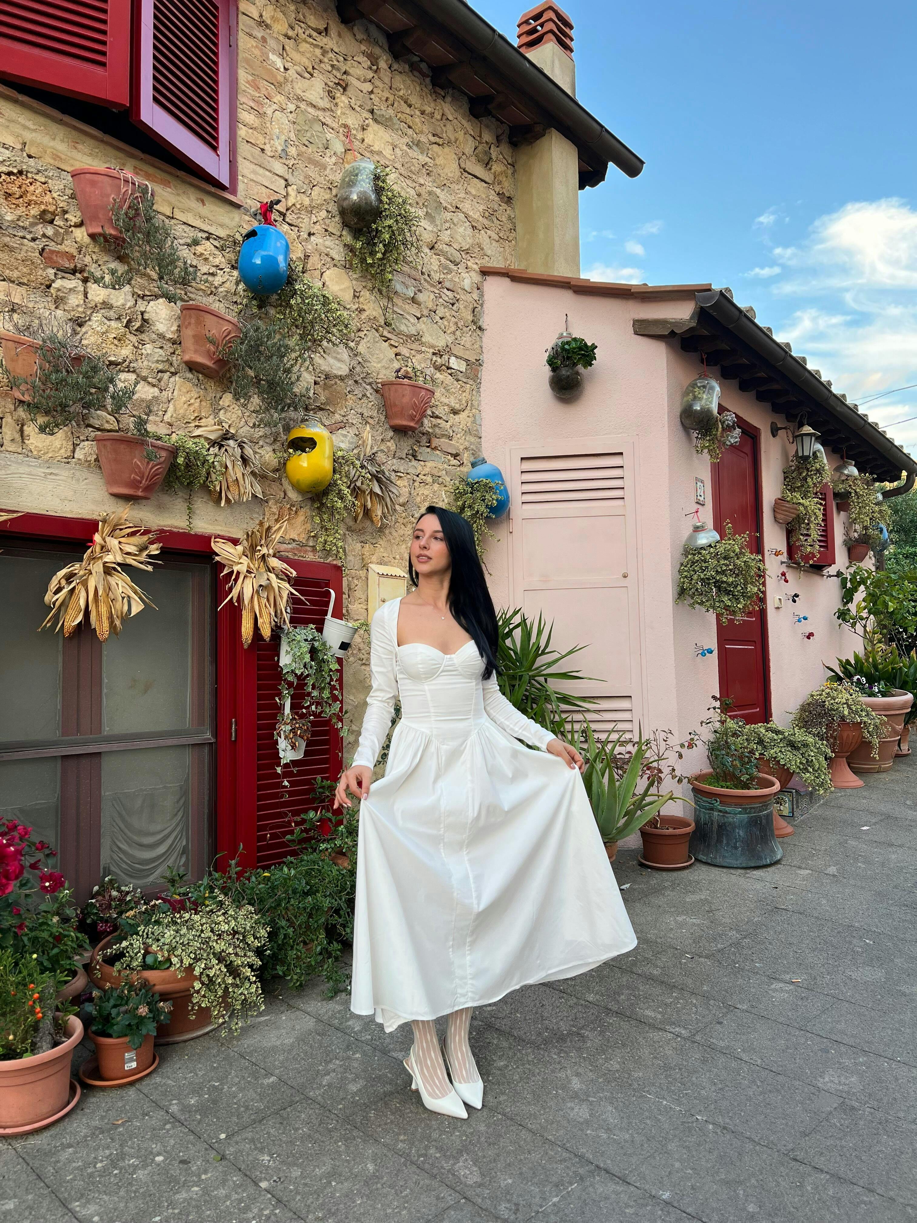 Tie Back A-Line Long Sleeve Dress#color_brown