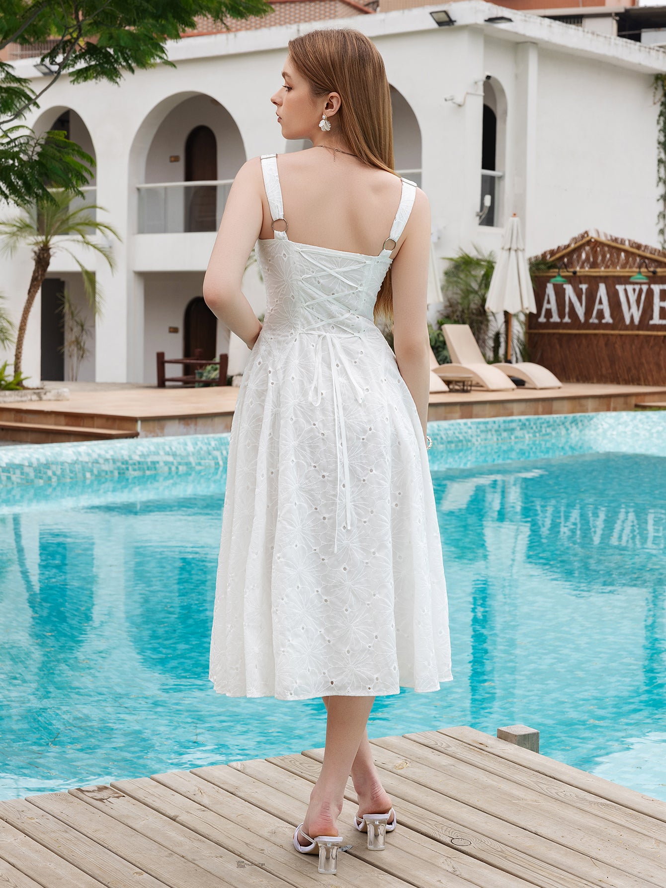 tie back v-neck jacquard midi dress#color_white