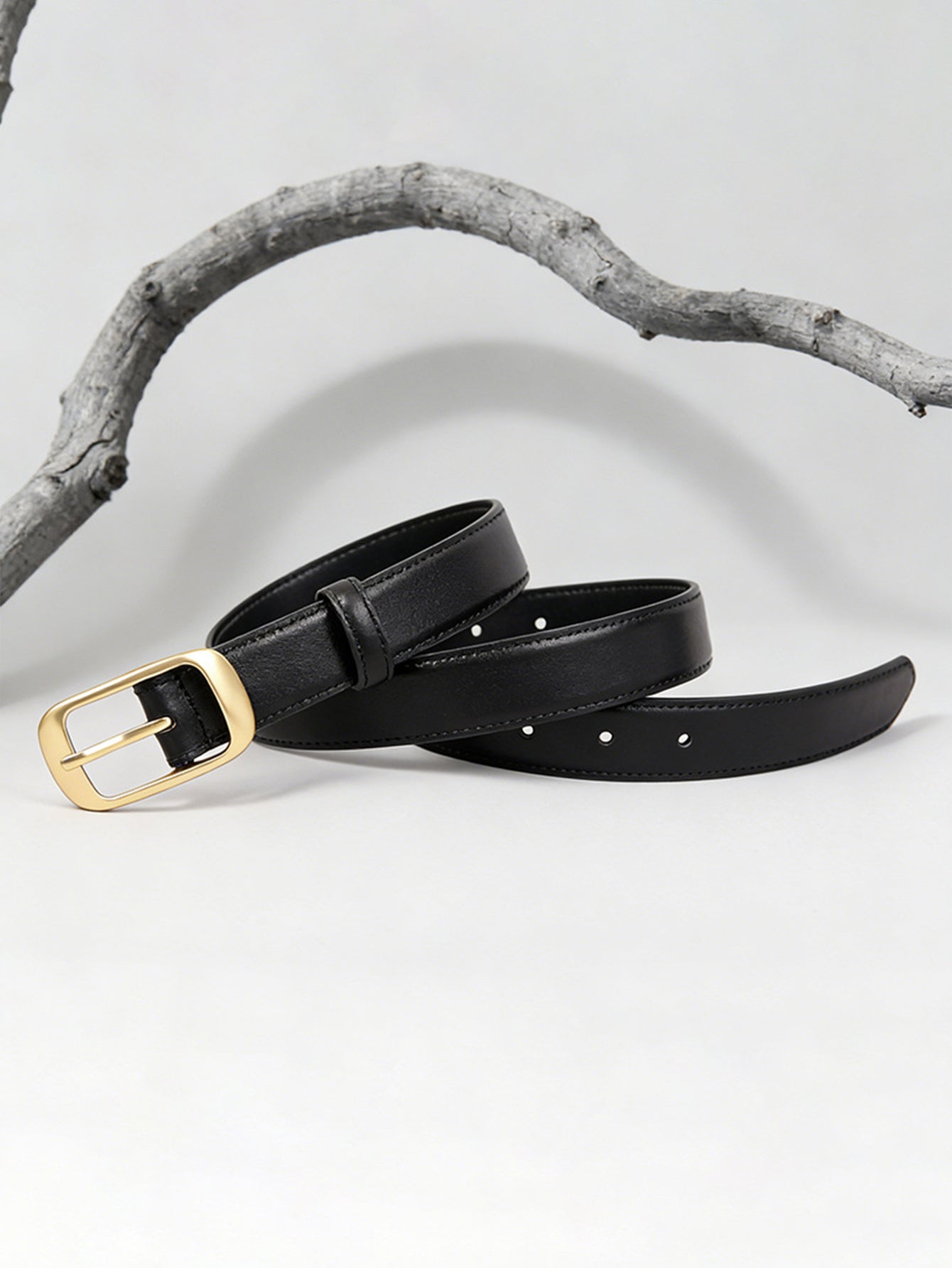 Leather With Belt Gold Buckle#color_black