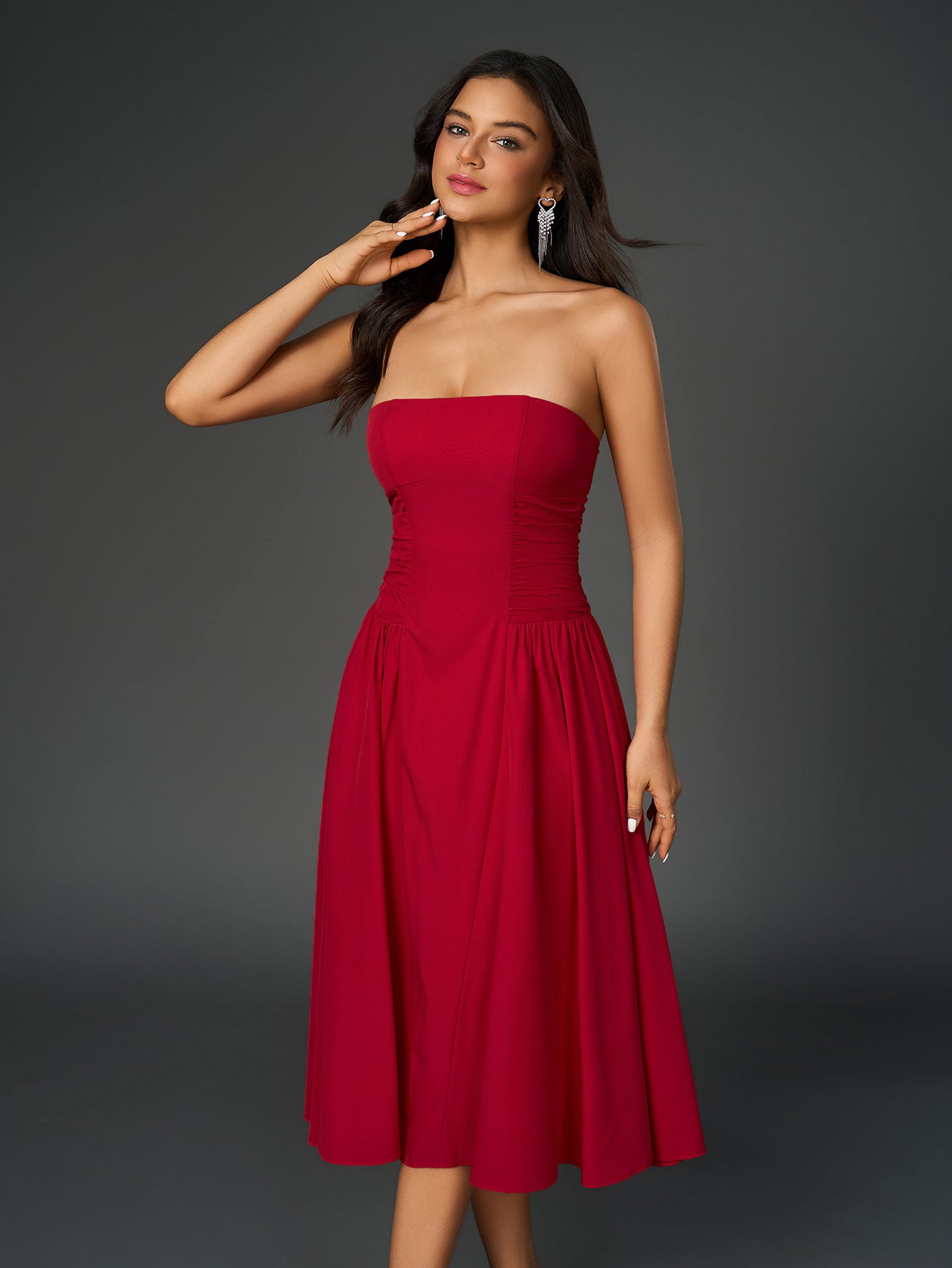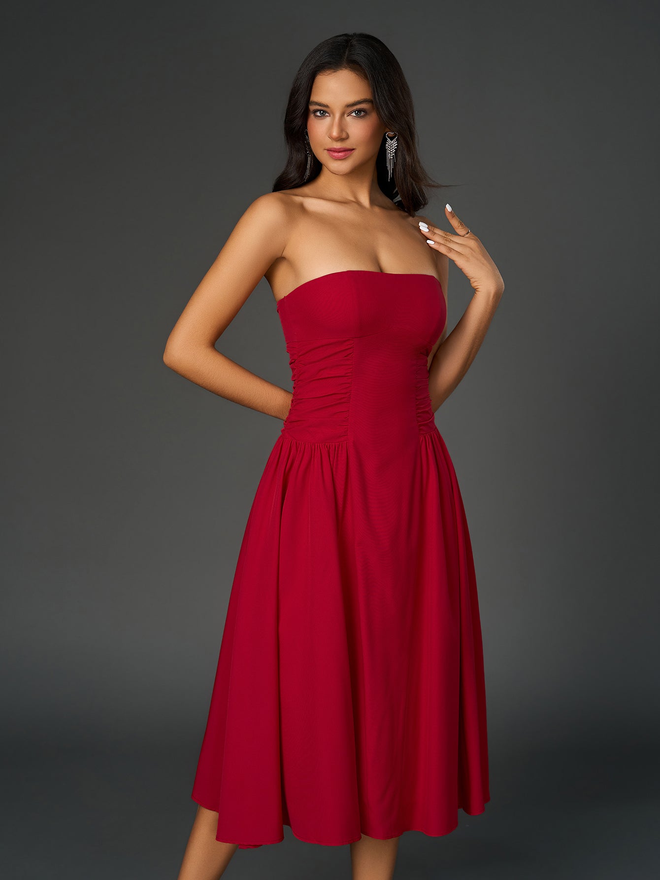 waist backless ruched prom tube dress#color_red